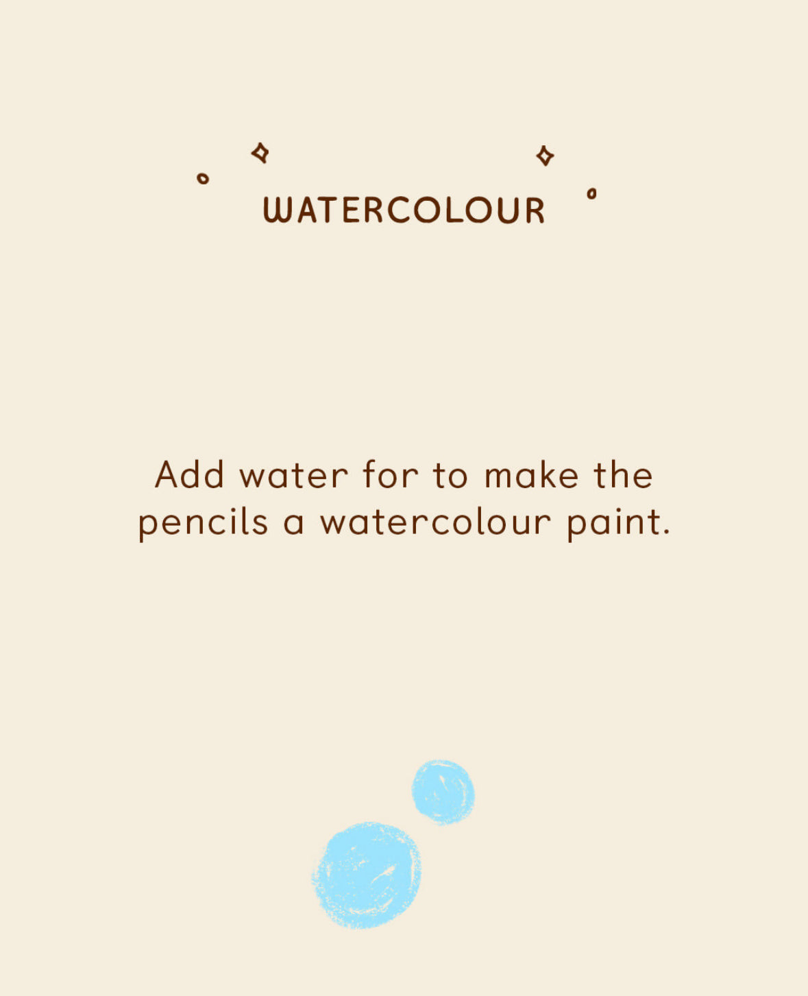 - Can be used in many fun ways: These pencils can be used with water for watercolour paint-like colours, or on paper, card, or even glass — giving kids lots of ways to play and create.