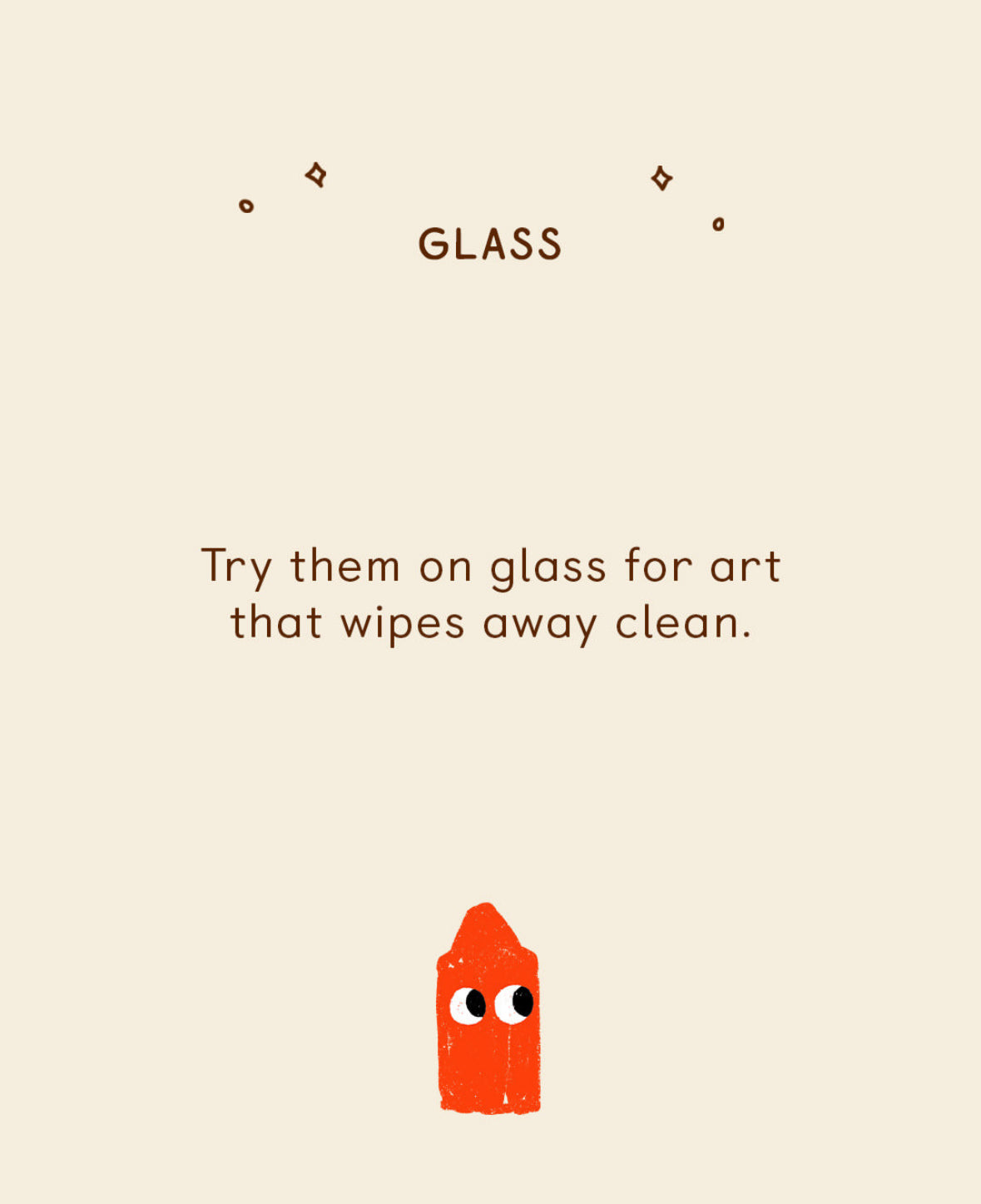 - Easy to clean: Simply wipes away from smooth surfaces with a damp cloth for no-mess creative play.